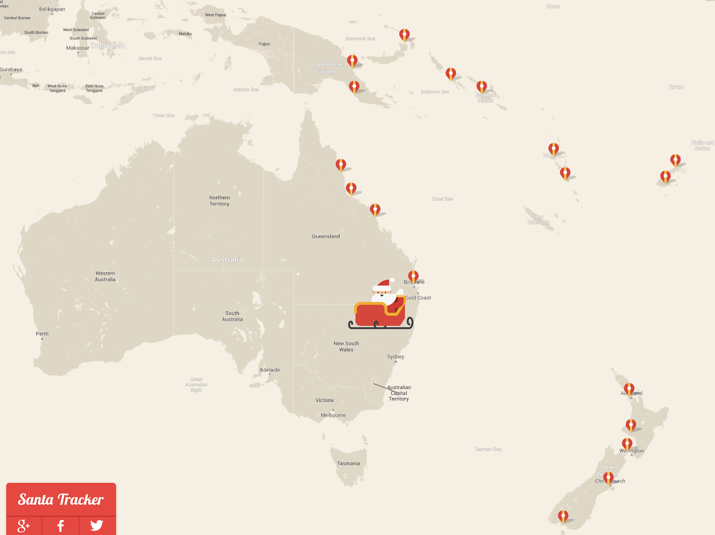 We make sure the big man’s travels—from Provideniya, Russia, to Mahajanga, Madagascar—can be followed on the dedicated website, with the app on the Android phone, or on TV with Chromecast. A quick click provides kids of all ages with: