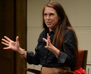 "I wanted to make something unique that is connected to this campus," she explained (pictured, left) during a public conversation with Professor Robert Faggen, the Gould Center's director. " What makes this place so special? Well, there's a mountain not very far from here. I kept thinking about it."