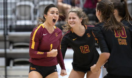 CMC students form a cheer tunnel inside Roberts Pavilion to welcome new students