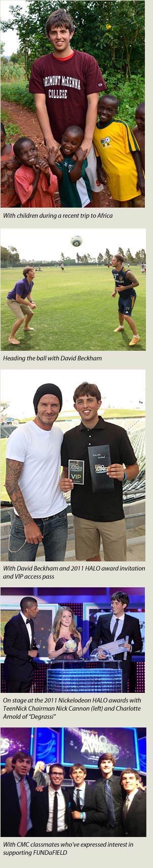 CMC Freshman Kyle Weiss was already busy last summer, between starting college and running an international non-profit organization. Then out of the blue, Nickelodeon called and asked to do a story about FUNDaFIELD, the organization Weiss founded at age 13 with his brother Garrett to build soccer fields for kids in Africa. Weiss had about 10 days thereafter to organize a meeting and a fundraiser for the crew of 12 from Nickelodeon in New York to attend.