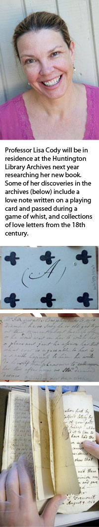 Professor Lisa Cody has won a joint Huntington Library National Endowment for the Humanities (NEH) grant of $50,000 for historical research. From September 2011 to June 2012, she'll be in residence at the Huntington Library.