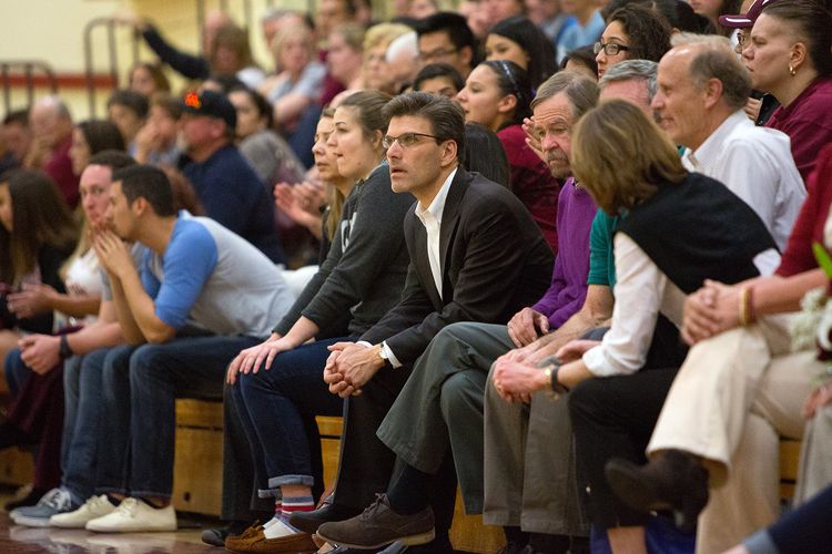 President Chodosh, an avid sports fan, at a CMS basketball game.