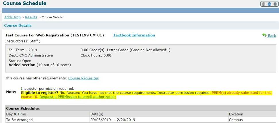 - The instructor’s permission is required. Note that instructor permission may be required even if there are open seats.